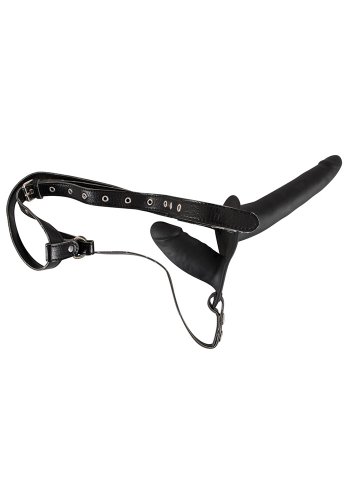 Strap-On med dubbeldildo tillverkad av silikon för kvinnor som både vill känna och skänka njutning. Med denna svart strap-on i silikon kan du ge dig hän i lesbiska lustlekar eller spännande rollspel, eller varför inte skänka honom njutning bakifrån? Selen är tillverkad av läderimitation och går att knäppa bort från dubbeldildon för enkel rengöring.