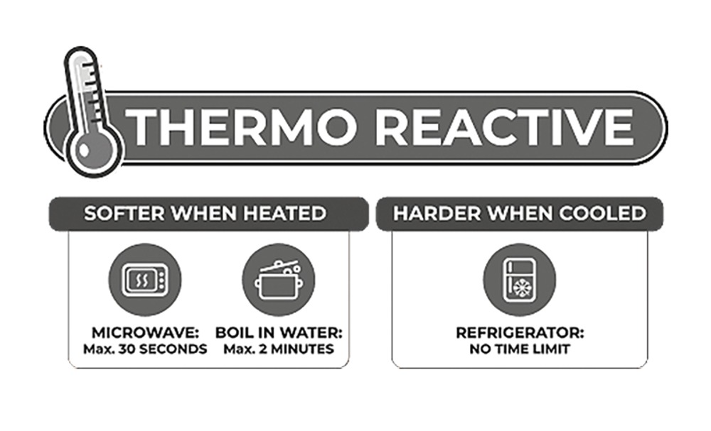 Modellen är även Thermo Reactive vilket innebär dels att materialet värms upp till kroppstemperatur kort efter att du börjat använda dildon. Vill du ha den mer böjlig och ännu mjukare så kan dildon köras i micron max 30 sekunder, eller kokas i vatten under 2 minuter. Önskar du den hårdare i materialet och styvheten kan den placeras i frysen utan att ta skada.